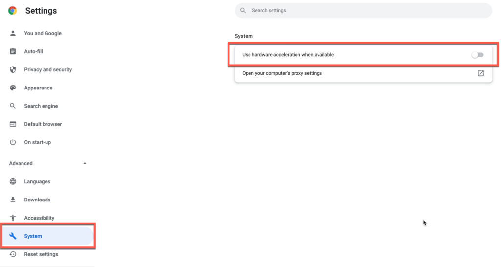 Ein ähnliches Verhalten gab es früher bei den Green Hippotizer. Da wurde für speziellen Content die Hardwarebeschleunigung deaktiviert und alles lief wie gewohnt. Da ich mit Chrome unterwegs bin, muss irgendwo eine Option sein, um die Hardwarebeschleunigung zu deaktivieren. Und die gibt es tatsächlich.