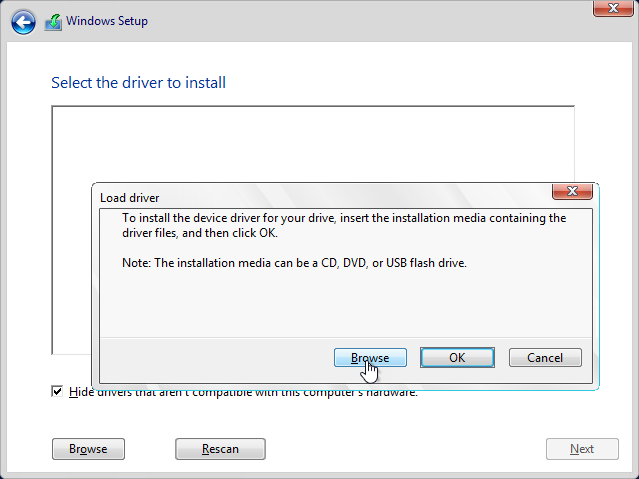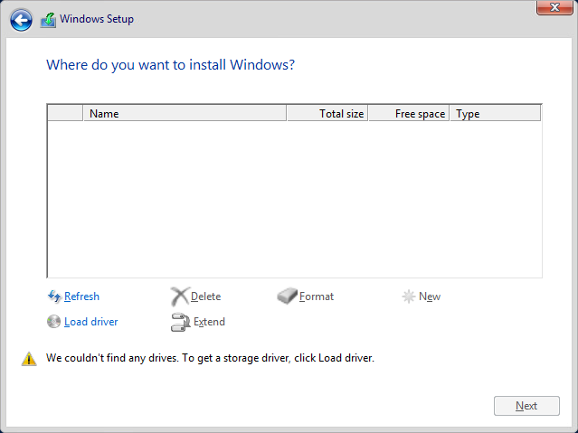 - Gehe zurück auf die VM und klicke auf “Load driver”.