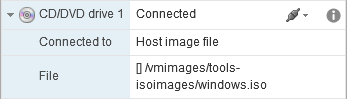 - Gehe auf die VM-Einstellungen und Lade die VM-Tools-Disk under /vmimages/tools-iso/windows.iso
