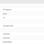 Als Ergebnis sehen wir nun, es handelt sich um ein PC Engines APU2 Board und hat die BIOS Version v4.11.0.5 installiert, Vor dem Update stand hier noch v4.8.0.7.
