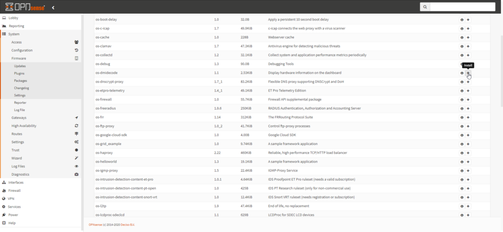 Beispiel für Variante 3 installieren ich auf der opnsense Appliance das Plugin os-dmidecode.