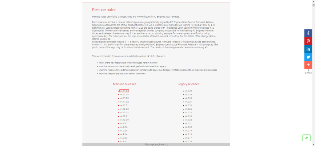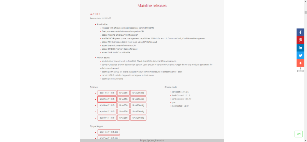 Nun haben wir alles beisammen, um das korrekte ROM herunterzuladen. Dazu gehst du nun auf folgende Webseite: https://pcengines.github.io/