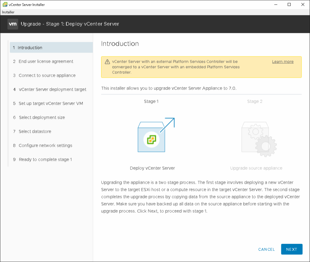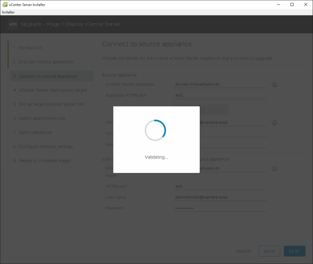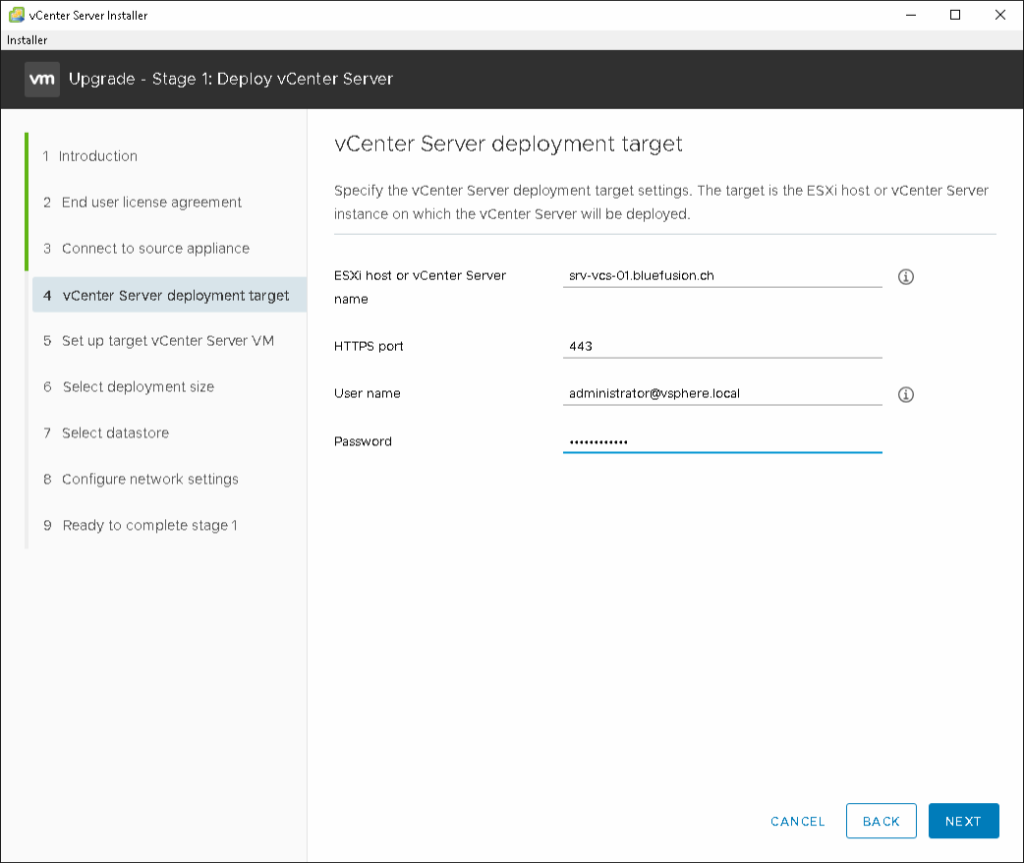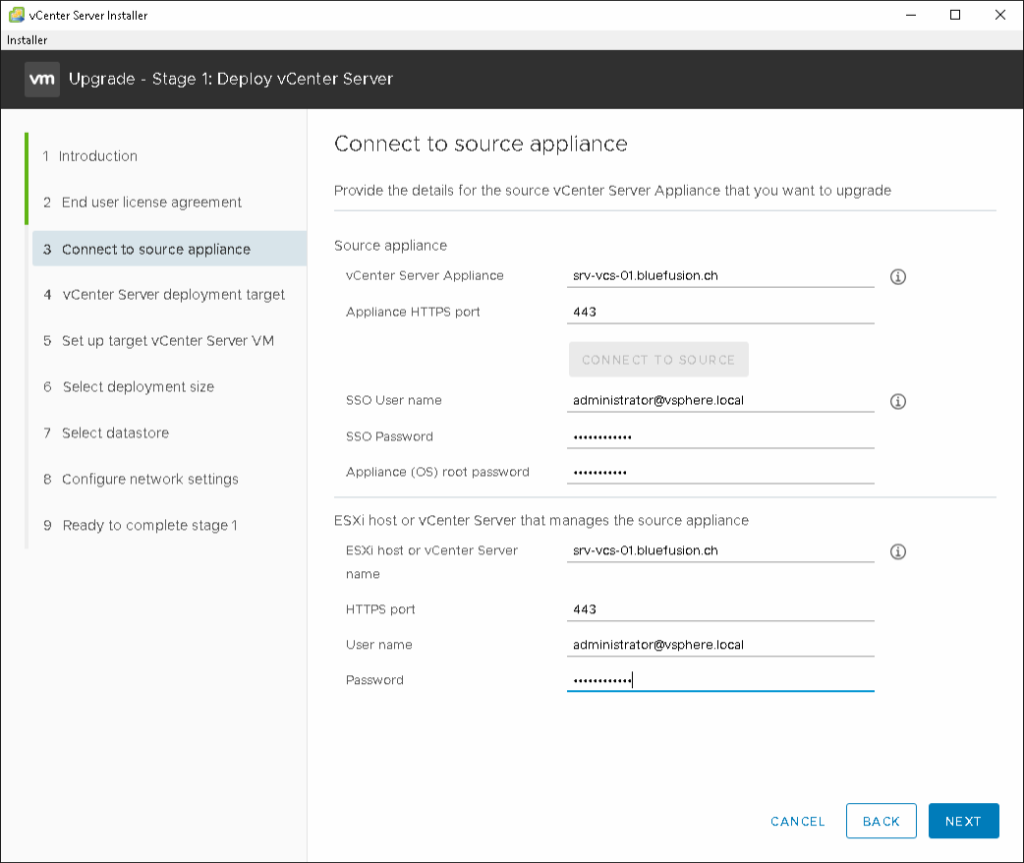 - Mach ein InPlace Upgrade auf einen FTP direkt aus dem VCSA Manager