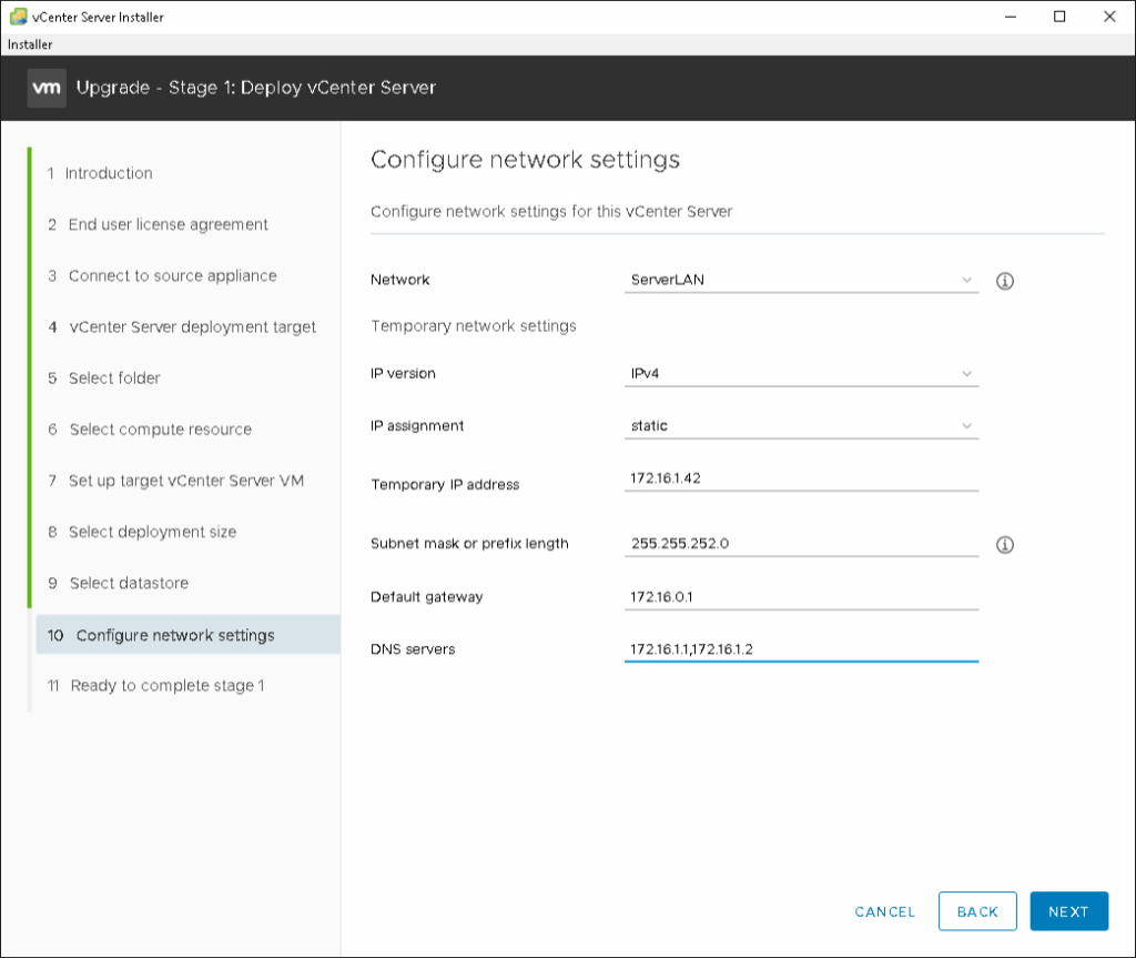 - Eine freie temporäre IP bereitstellen, die Verbindung zu Hosts und vCenter hat